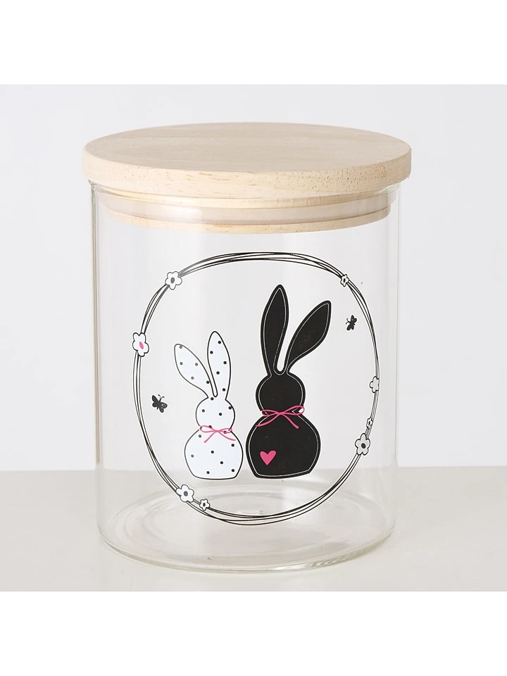 2-delige Set: Voorraadpotten “Happy” Transparant/naturel – 750 Ml